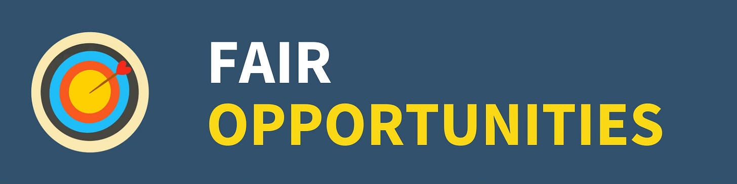 The second is fair opportunities. Everyone should have a decent chance to succeed in life, so we should remove the key barriers to equal opportunities.